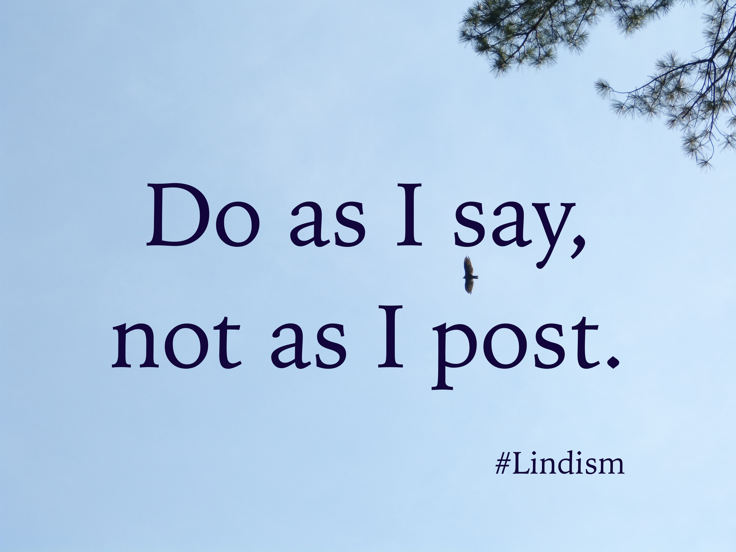 Today's Lindism plays on the phrase, "Do as I say, not as I do" which is meant as a caution statement given to children by their parents. The Lindism shares the same sentiment, but in reference to what a parent posts on social media.