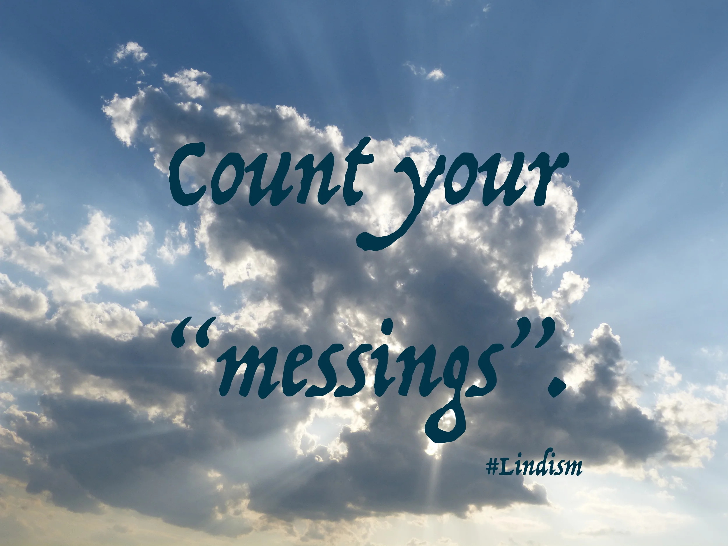 Today's Lindism plays on "Count your blessings" which reminds us to be grateful. In my twist, I remind people to keep an eye on how often you mess up; not in terms of trying something new and failing, but messing up in an ignoble way. Doing things with evil intentions is not good and should be kept to a minimum.